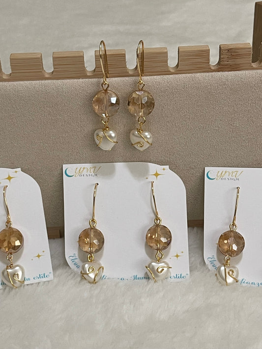 Aretes perla de corazón alambrado